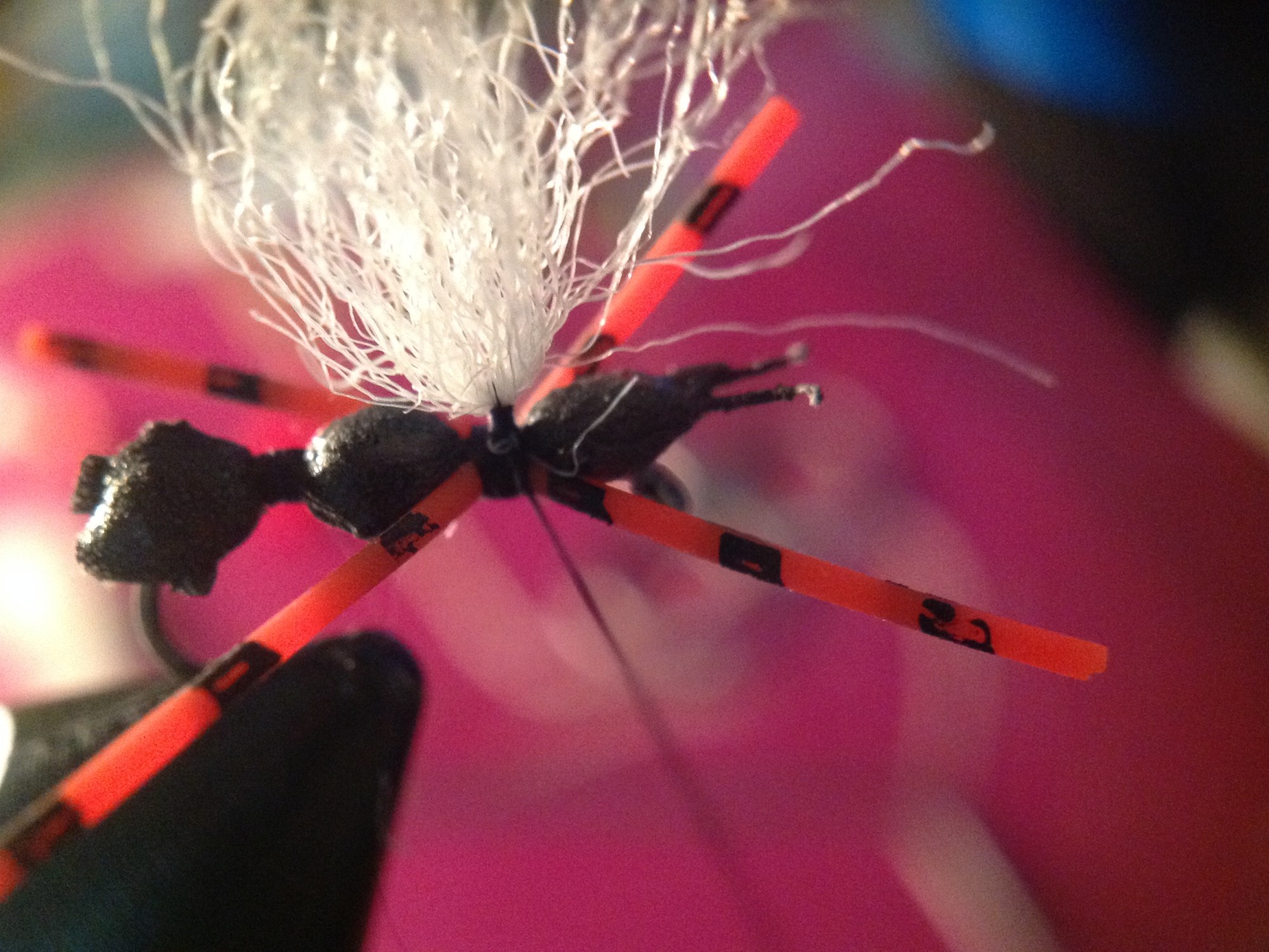 While not the prettiest thing to tie, this ant imitation seems to do well and is very visible despite its small “footprint” on the water. Plus it seems every fish in Arizona likes some orange rubber legs!