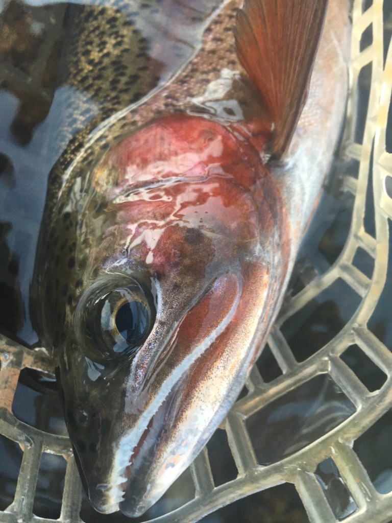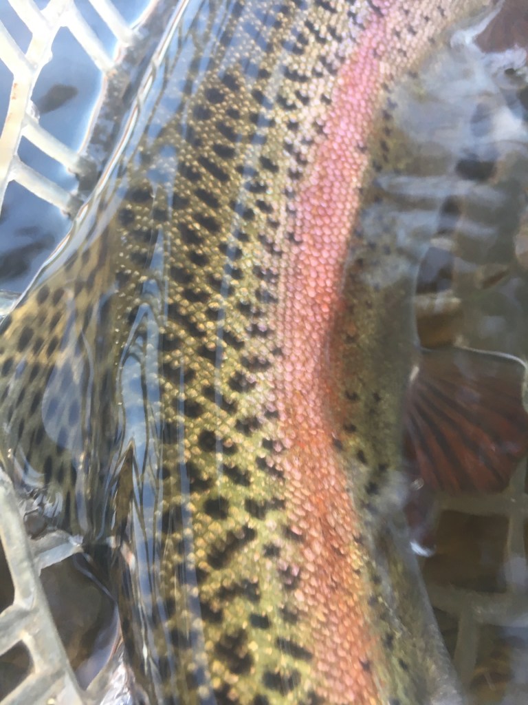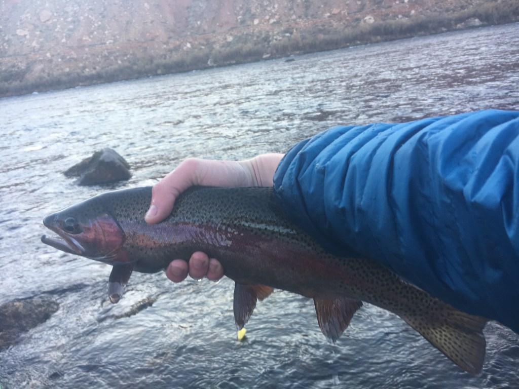 Colorado River rainbows have got to be some of the most diverse in a fishery I have had the chance to fish. I’m sure it is the result of stocking every conceivable type of fish into a river that you possibly could, but the result today is incredible. Will the fish be chrome? Spotted? Red? Cutthroat-y? Light green backed? Dark colored? Pink? I have no idea what color phase of rainbow I will catch on each cast, and there is something pretty rad about that.