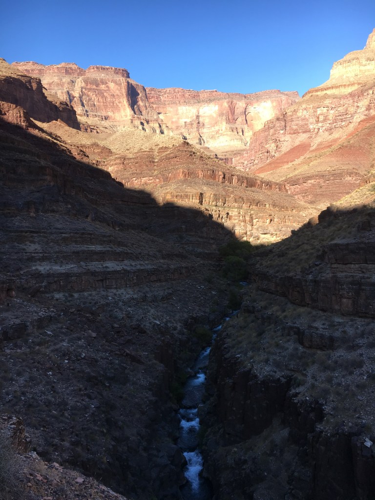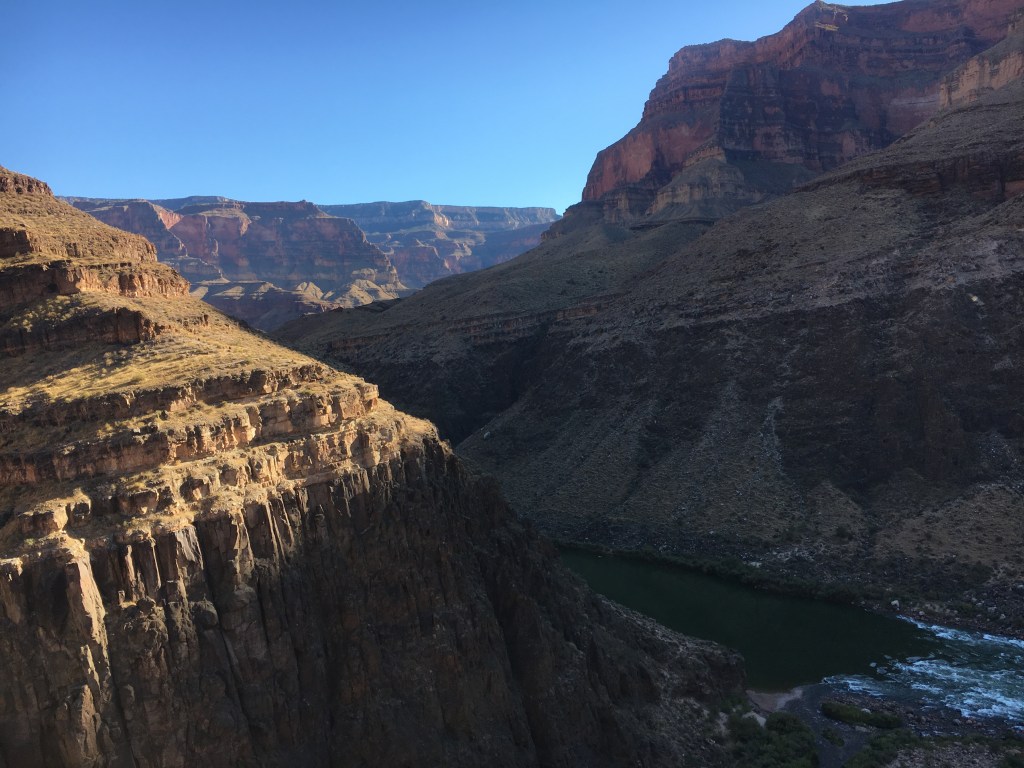 The hike out is long and very much uphill with a little over 5,000 vertical feet to cover in the day. It does take you through one of my favorite rock layers in the canyon, the Esplanade Sandstone. This rock layer is filled with wild red sandstone rock formations. Contoured rock scattered all around that has been smoothed by wind and filled with shapes similar to those seen in a cartoon . An intact Pinyon/Juniper forest fills the gaps in the rocks. Looking at the diversity of grasses, forbs and shrubs really makes you wonder how the rest of the state would look if it hadn’t been grazed to the ground in the past 100 or so years.