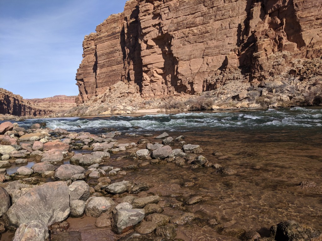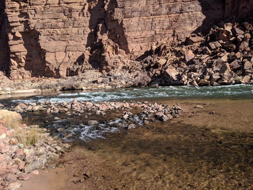 After a slow fishing, icy morning we decided to switch things up. We’d head downstream beneath a major tributary and into the beginning of the canyon. Worst case scenario is that its a fun hike to a beautiful beach along side of a great fishing rapid. Maybe the fish were eating there, but then again who really cares?