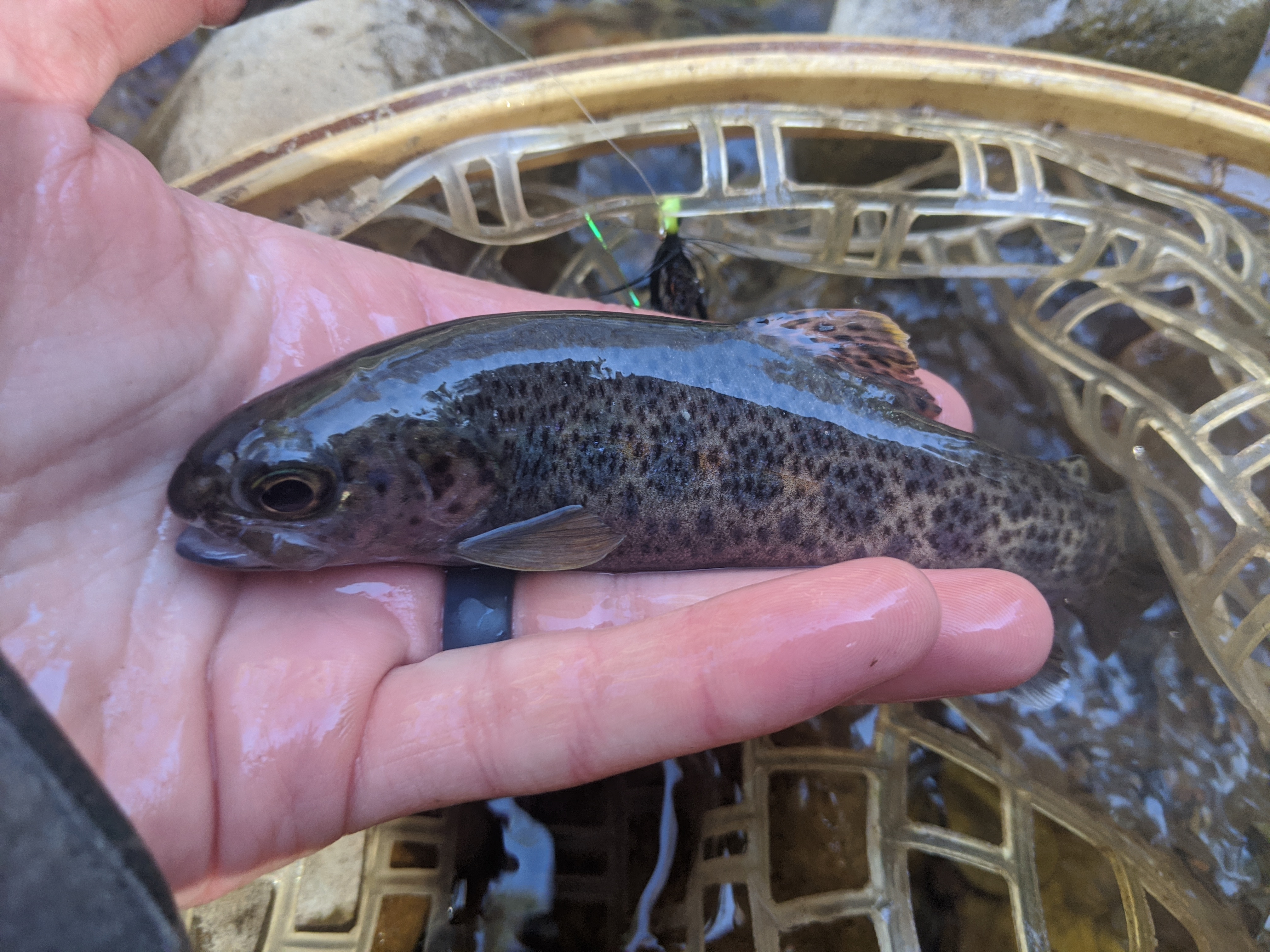 The casts were tricky, branches and logs cover the creek and the bank. If you hit your spot though, it almost always produced a fish. These little guys were eating to get big. Chasing streamers and smacking dries.