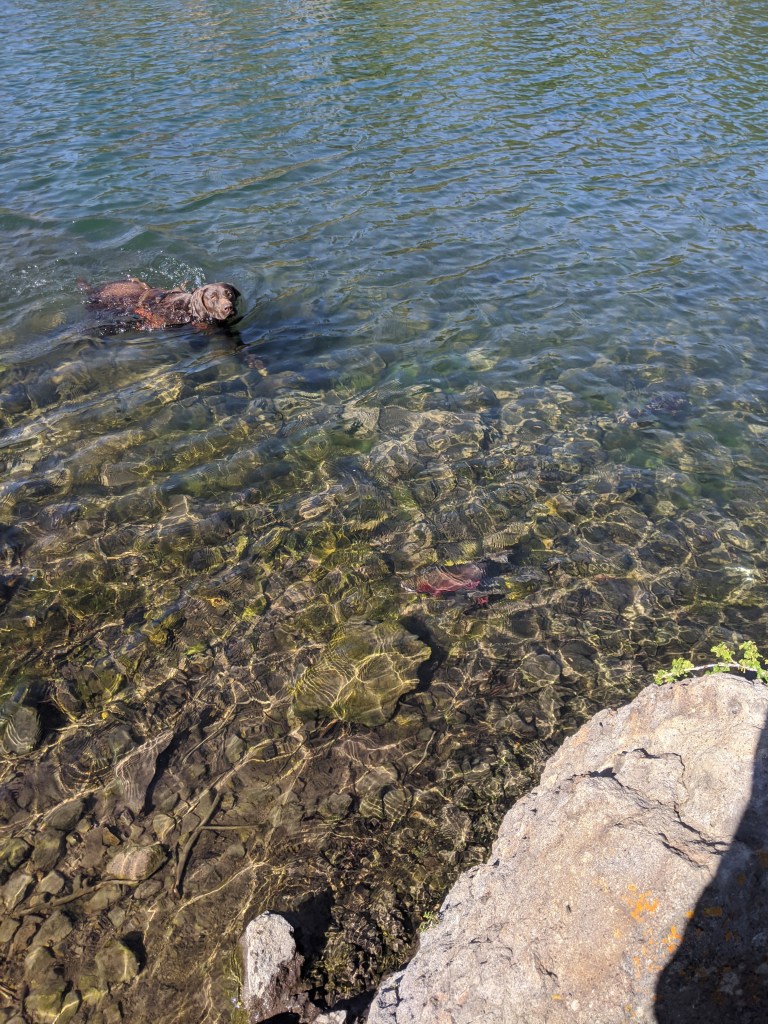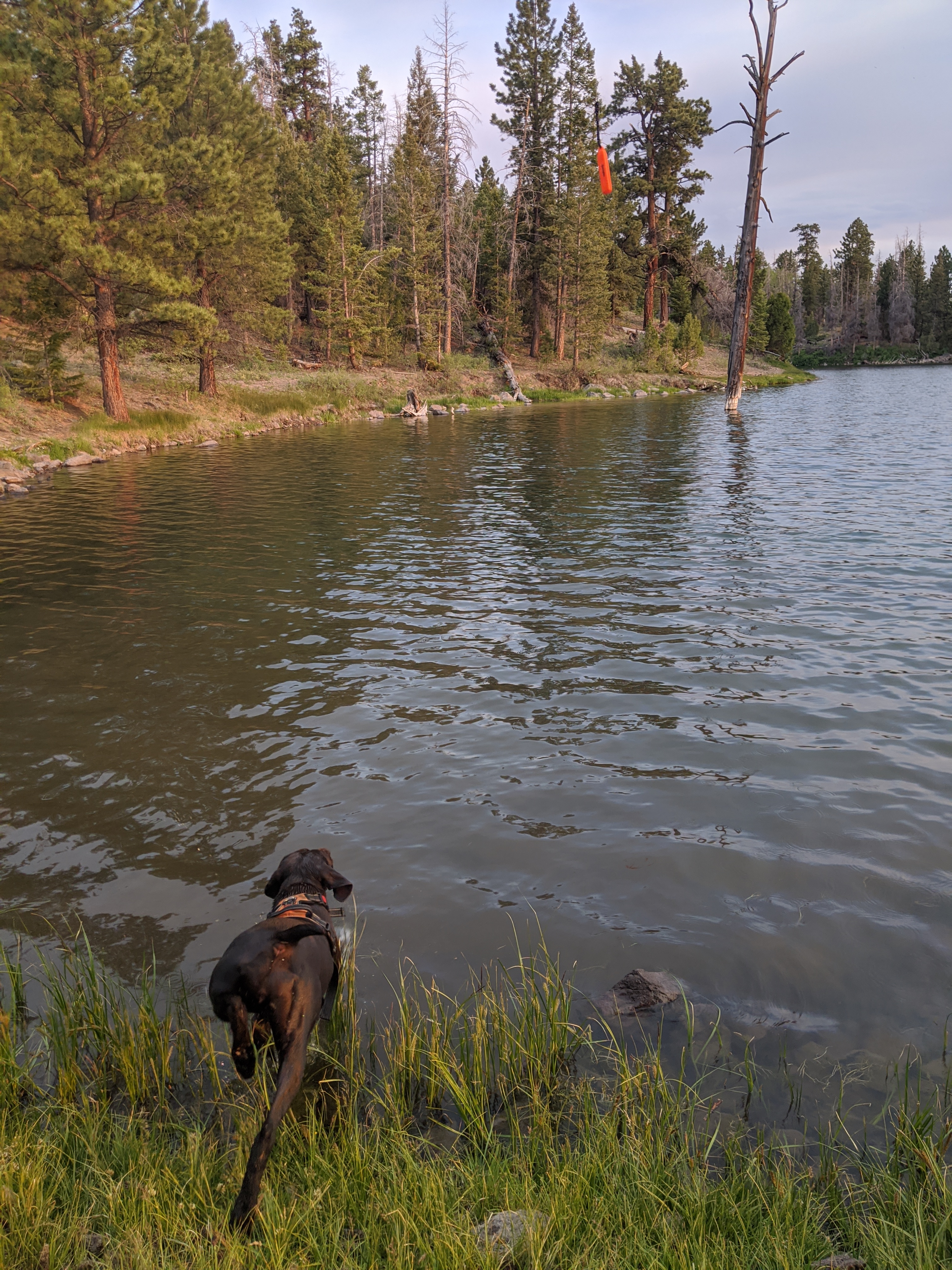 Fishing with our bird dog is an occasionally challenging endeavor. She wants to sniff every piece of ground and swim all day. On the other hand, we want to have a little stealth along the edge of the water that is lost when a bird dog decides to splash the whole shoreline. Fortunately there’s enough time in a day to both fish and let the dog get her yeah-yeahs out. Plus the midday fishing was some slow going so it was good to have a distraction. Up until the fish started rising that is, then her distraction wasn’t as welcome but you can’t have it all.