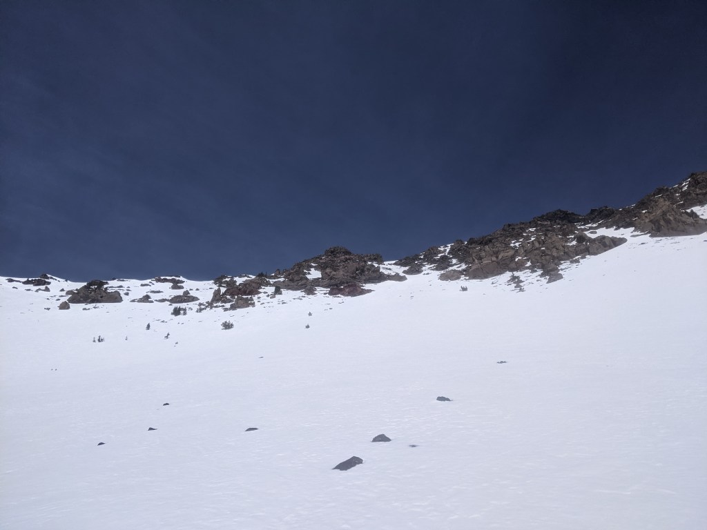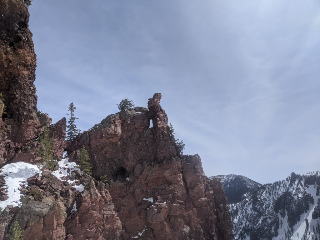 The uphill was easy where there was firmly packed snow and comically poor where there was scree. One step forward and one step sideways/downhill and heads up below! The excitement of seeing what would be over the next knife ridge or narrow canyon corner kept us pushing uphill and forgetting about the steep slopes, uncertain footing and thin air. Excluding the occasional tumbling rock thawing out of uphill cliffs, the day as a whole was about as pleasant and fun as any I’ve had in the backcountry.
