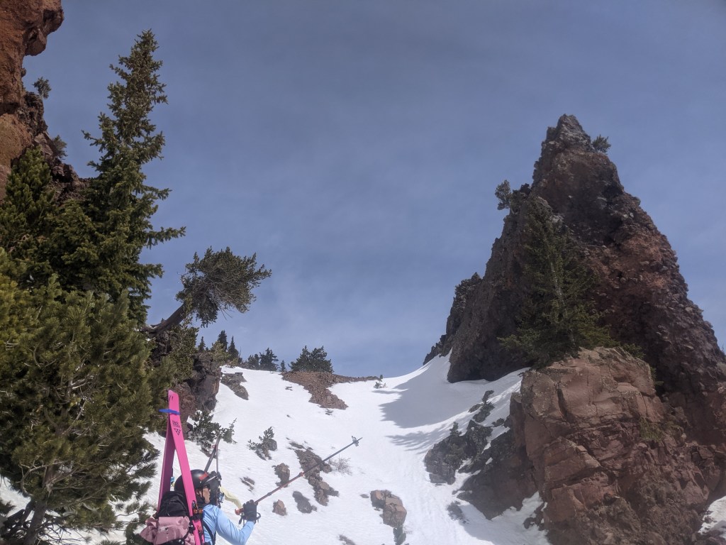 With life coming at me fast in the next few weeks/months it was a good change of pace to get another tour on the lonely mountain and get away from it all. Stable and soft snow allowed us to ski some of the bigger lines we have been eyeing up the last few winters. These particular chutes take me to what I consider to be the most unique, fun to ski and visually awesome part of the mountain. The jagged volcanic rocks are twisted into some fantastic formations. Series of narrow slots and protruding hoodoos pulled seemingly from a far away planet or the over imaginative mind of a children’s book animator. Needless to say it is easy on the eyes.