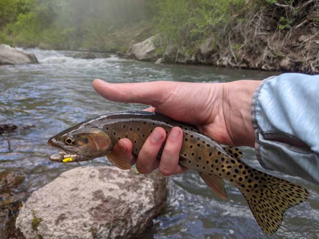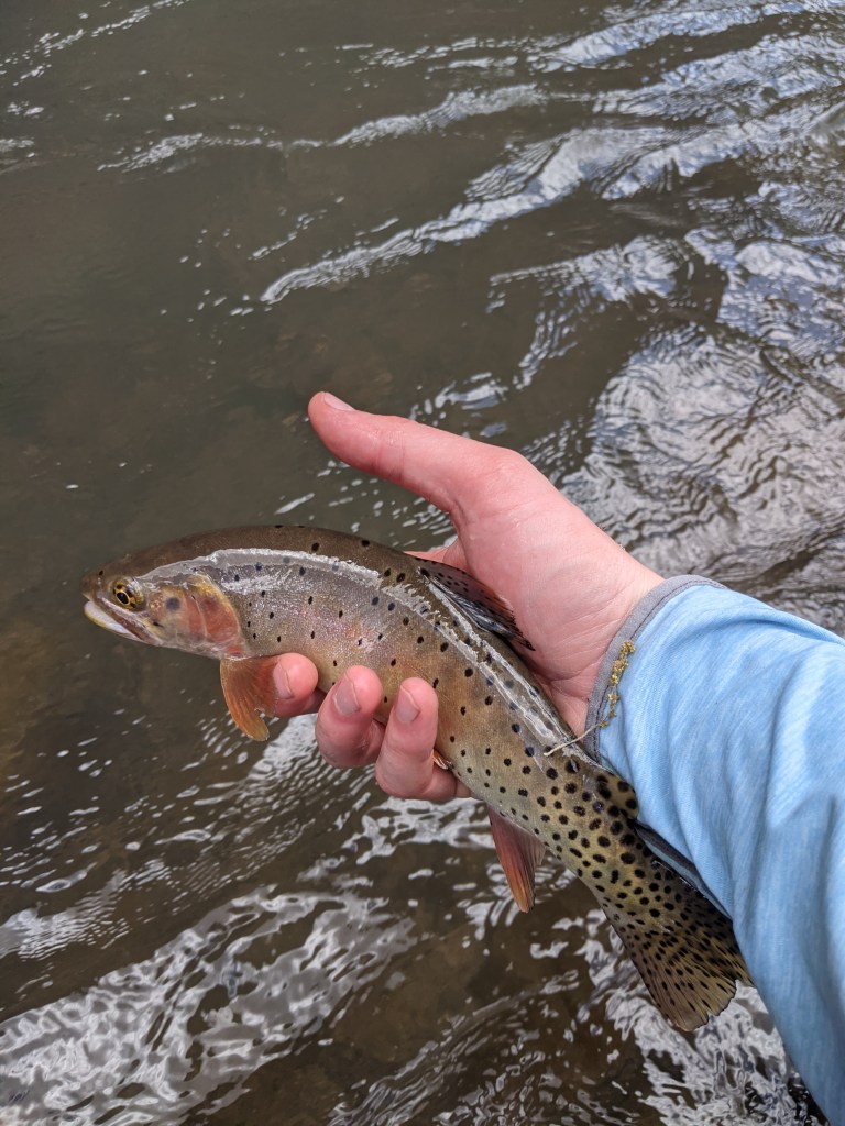 The first fish of the day came on a hopper fly that I had gotten while fishing with a good friend who has since passed on, a bitter sweet moment. I’m sure he was cheering on the hook-up like old times and it was good to get a cutthroat on one of those flies.