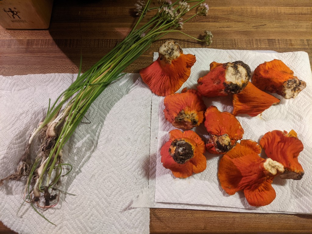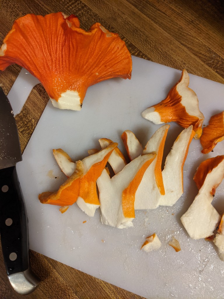 These rains bring a multitude of changes to our forest, but one of the most exciting is the mushrooms, more specifically lobster mushrooms. They look like some sort of strange, bright orange deformed cheeto peaking out from beneath the duff layer. While not technically a mushroom, but instead it is another parasitic fungus that inhabits other species of mushroom turning them orange (like a boiled lobster). More interesting still is that the parasitic host almost completely alters the host mushroom, changing it so significantly that the host can generally no longer be identified. They are plentiful near my house and vey easy to identify, which is good news because I’m no serious mycologist. These delicious treats don’t really taste like a lobster but they are my personal favorite mushroom.