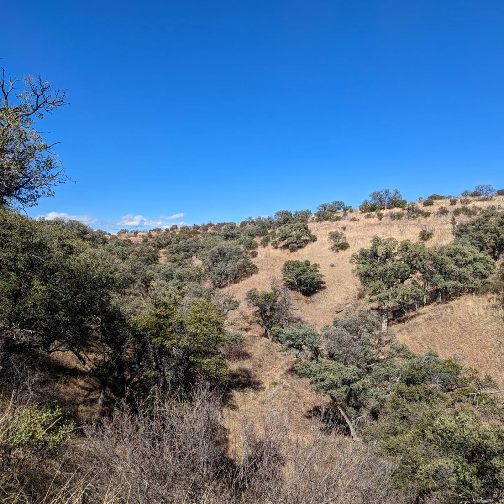 Pavement only takes you so far for these birds and after an hour or so on dirt and only one border patrol stoppage we arrived. The truck stayed on top of a ridge that looked down a series of short valleys. Almost like a bed sheet that was pushed up to form a series of small folds. The folds were covered in gold grass and dotted with live oak in clumps and individual stands. Knowing the country looked right we started walking.
